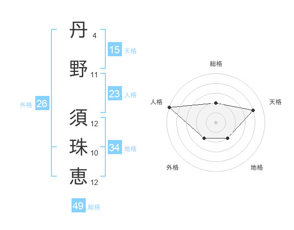 丹野 須珠恵さんの天格は15画の4点!