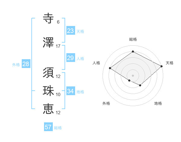 寺澤 須珠恵さんを姓名の画数から五運を鑑定