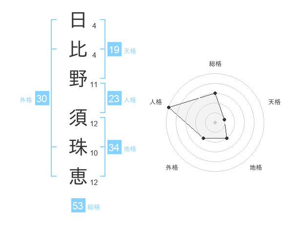 日比野 須珠恵さんを姓名の画数から五運を鑑定