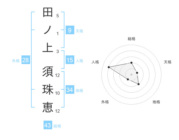 田ノ上 須珠恵さんを姓名の画数から五運を鑑定