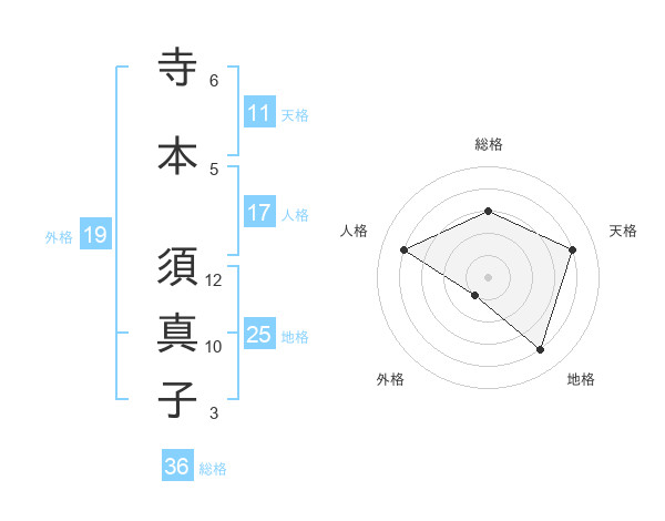 寺本 須真子さんを姓名の画数から五運を鑑定