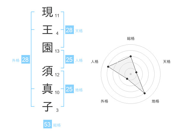 現王園 須真子さんを姓名の画数から五運を鑑定