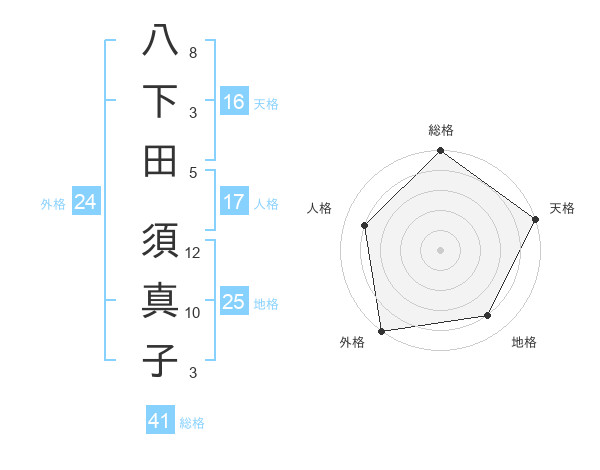 八下田 須真子さんを姓名の画数から五運を鑑定