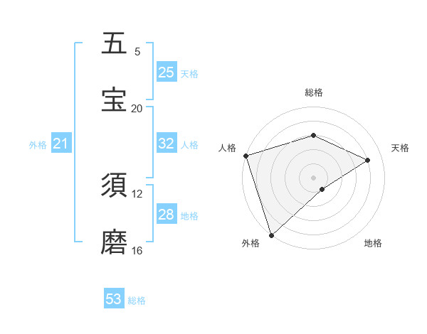 五宝 須磨さんの総格は53画の3点!