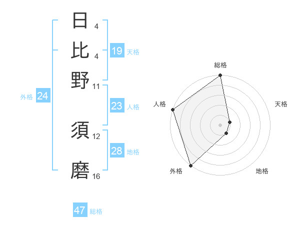 日比野 須磨さんを姓名の画数から五運を鑑定