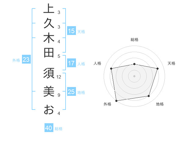上久木田 須美おさんを姓名の画数から五運を鑑定