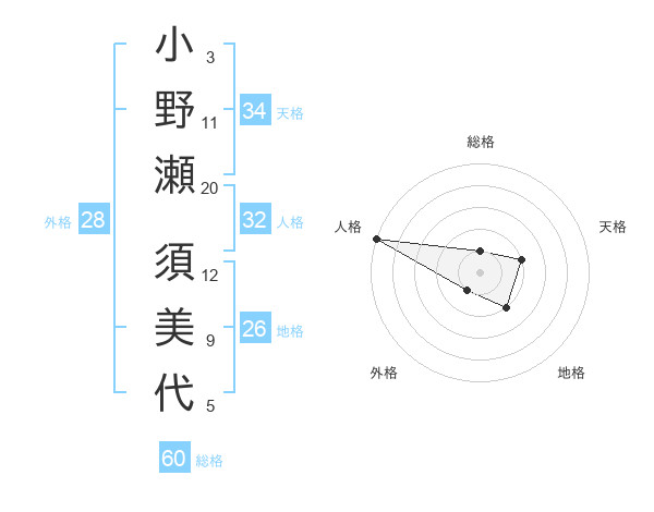 小野瀬 須美代さんを姓名の画数から五運を鑑定