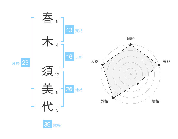 春木 須美代さんの総格は39画の5点!