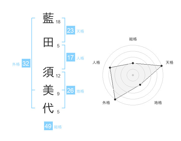 藍田 須美代さんを姓名の画数から五運を鑑定