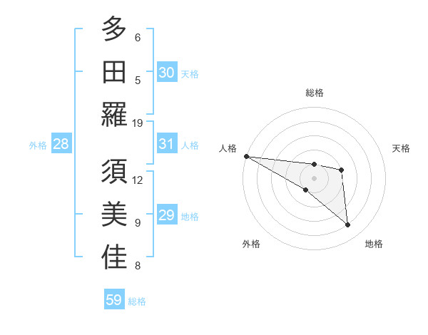 多田羅 須美佳さんを姓名の画数から五運を鑑定