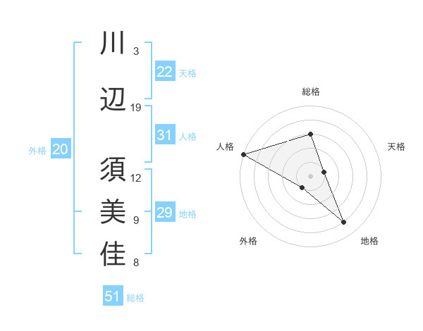 川辺 須美佳さんを姓名の画数から五運を鑑定
