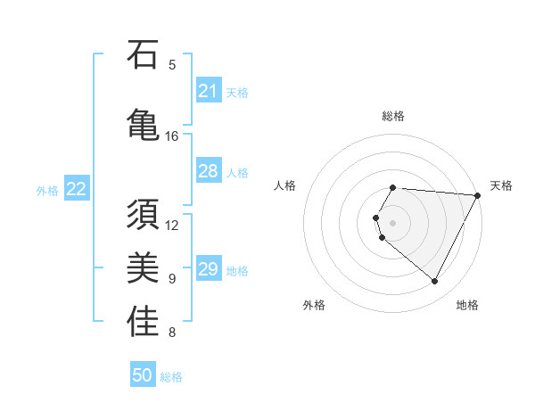 石亀 須美佳さんを姓名の画数から五運を鑑定