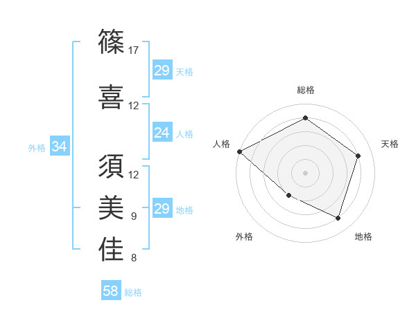篠喜 須美佳さんを姓名の画数から五運を鑑定
