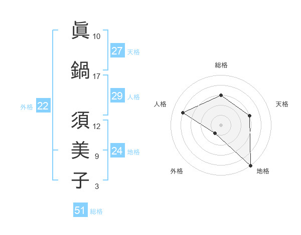 眞鍋 須美子さんの総格は51画の3点!