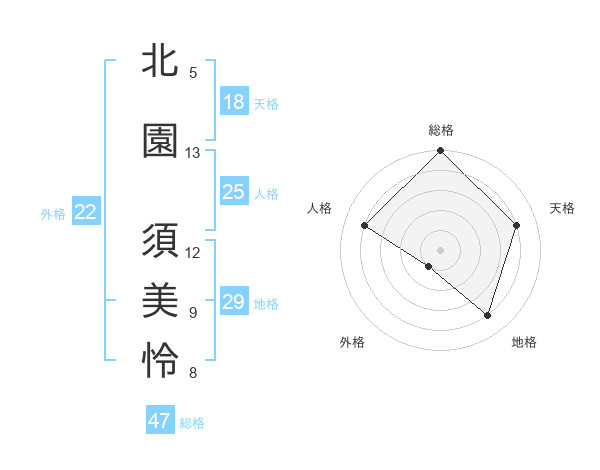 北園 須美怜さんを姓名の画数から五運を鑑定