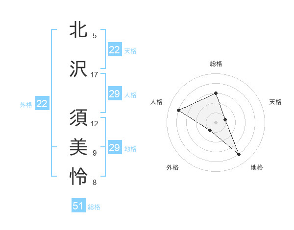 北沢 須美怜さんの外格は22画の1点!