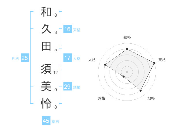 和久田 須美怜さんを姓名の画数から五運を鑑定