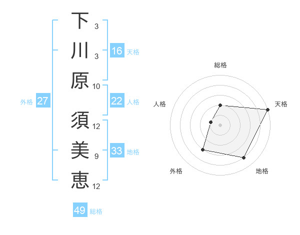 下川原 須美恵さんの外格は27画の3点!