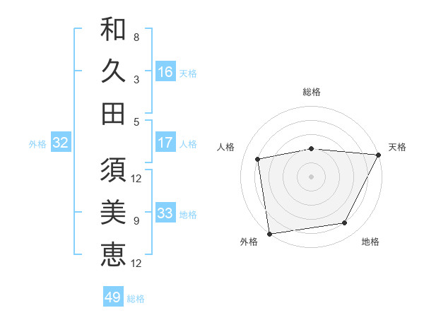 和久田 須美恵さんの総格は49画の2点!