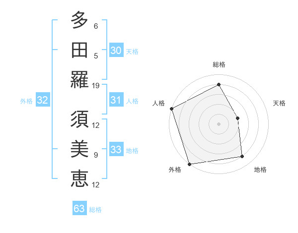 多田羅 須美恵さんの総格は63画の4点!