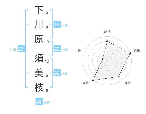 下川原 須美枝さんを姓名の画数から五運を鑑定