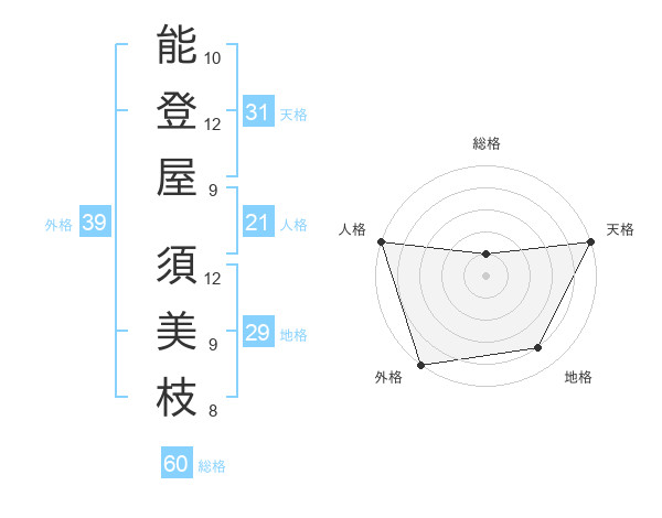 能登屋 須美枝さんを姓名の画数から五運を鑑定