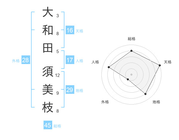 大和田 須美枝さんを姓名の画数から五運を鑑定