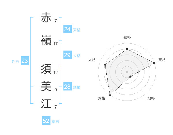 赤嶺 須美江さんの天格は24画の5点!