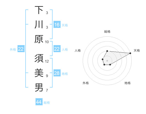 下川原 須美男さんを姓名の画数から五運を鑑定