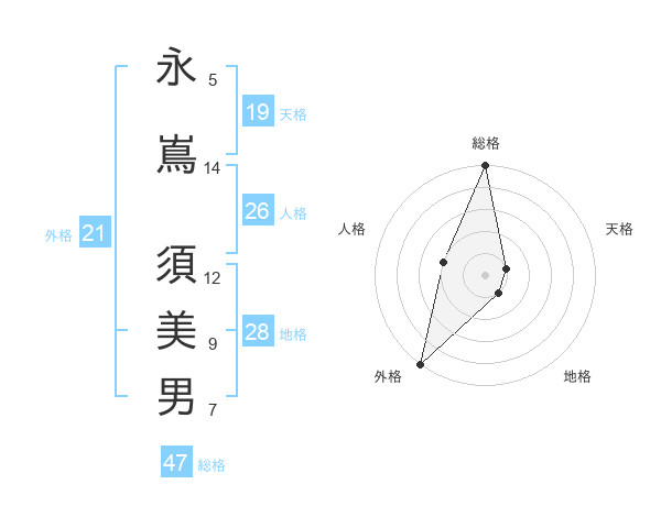 永嶌 須美男さんを姓名の画数から五運を鑑定
