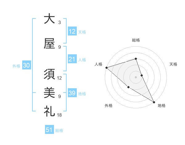 大屋 須美礼さんを姓名の画数から五運を鑑定
