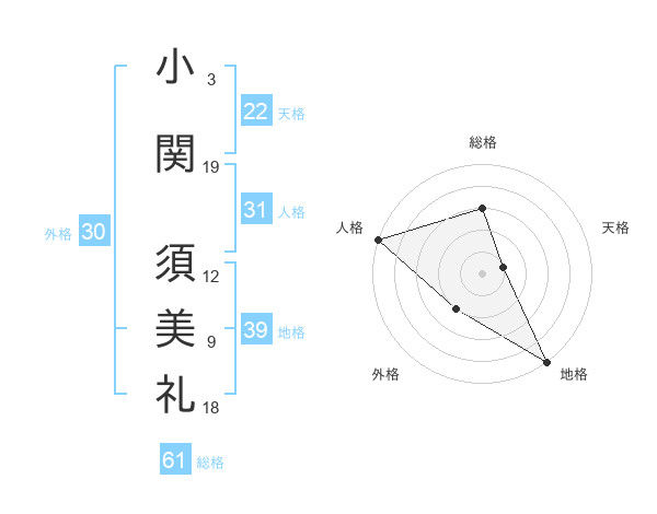 小関 須美礼さんの総格は61画の3点!