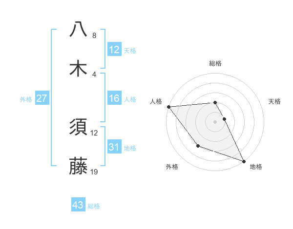 八木 須藤さんの地格は31画の5点!