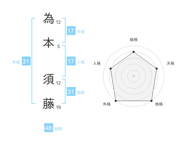 為本 須藤さんの地格は31画の5点!