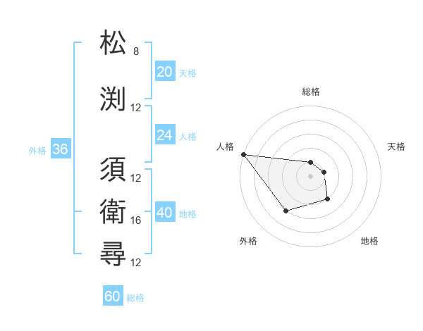 松渕 須衛尋さんを姓名の画数から五運を鑑定