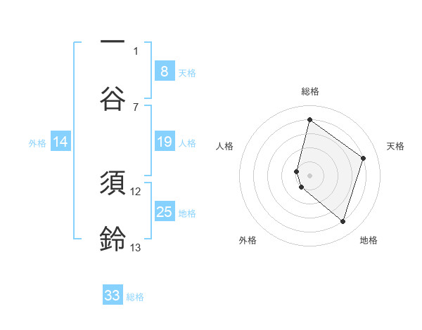 一谷 須鈴さんを姓名の画数から五運を鑑定