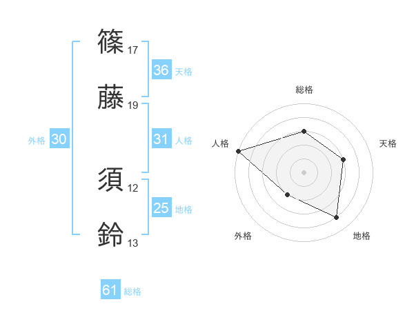 篠藤 須鈴さんの総格は61画の3点!