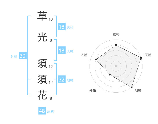 草光 須須花さんの天格は16画の5点!