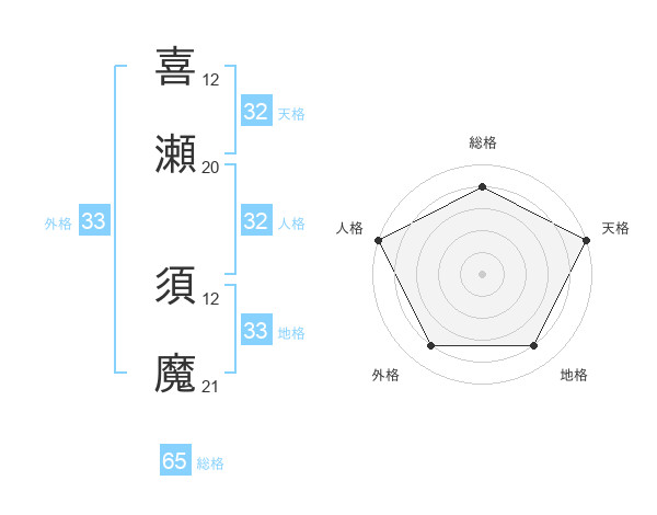 喜瀬 須魔さんの天格は32画の5点!