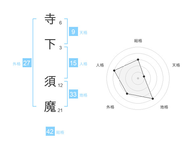 寺下 須魔さんを姓名の画数から五運を鑑定