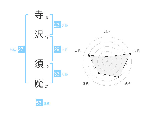 寺沢 須魔さんを姓名の画数から五運を鑑定