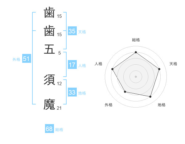 歯歯五 須魔さんを姓名の画数から五運を鑑定