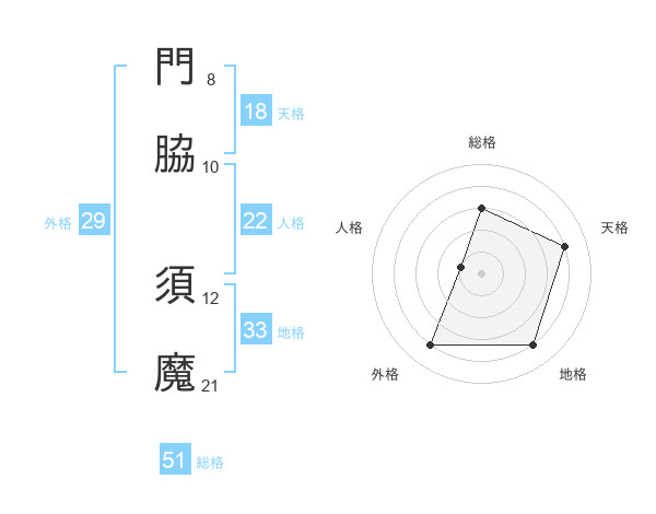 門脇 須魔さんを姓名の画数から五運を鑑定