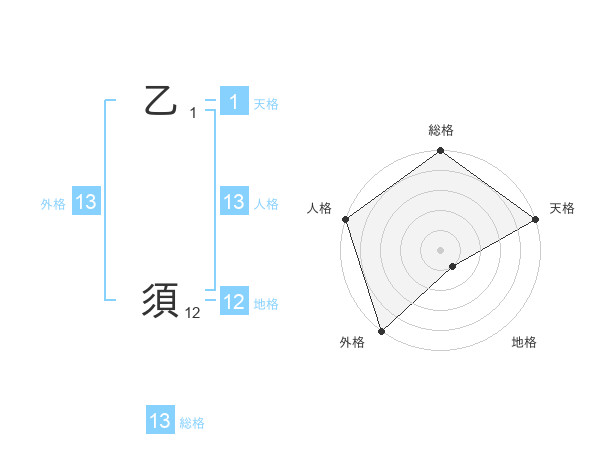 乙 須さんの外格は13画の5点!