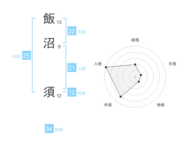 飯沼 須さんの総格は34画の2点!