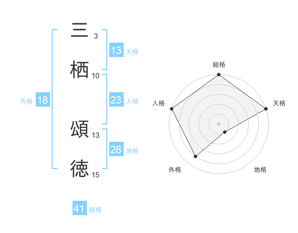 三栖 頌徳さんを姓名の画数から五運を鑑定