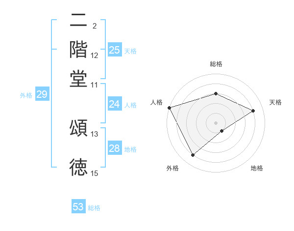二階堂 頌徳さんを姓名の画数から五運を鑑定