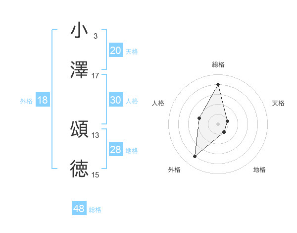小澤 頌徳さんの天格は20画の1点!