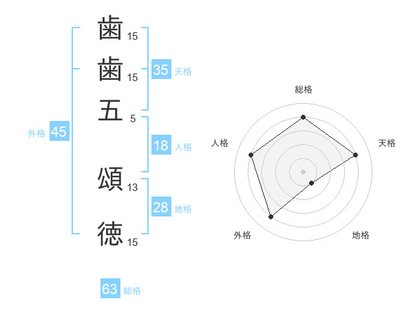 歯歯五 頌徳さんの外格は45画の4点!