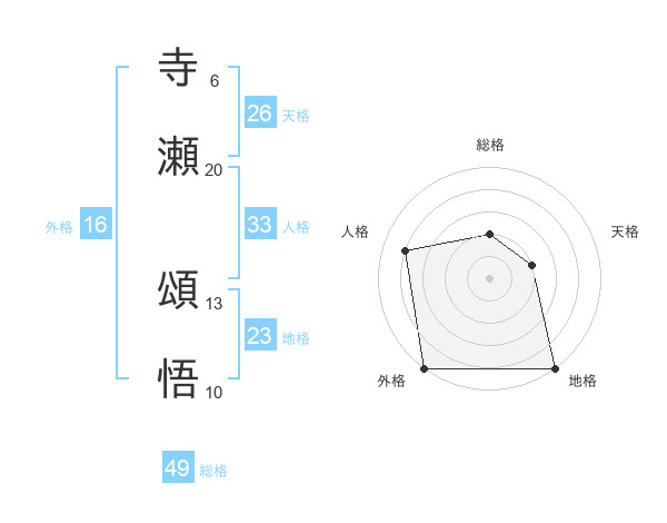 寺瀬 頌悟さんの天格は26画の2点!